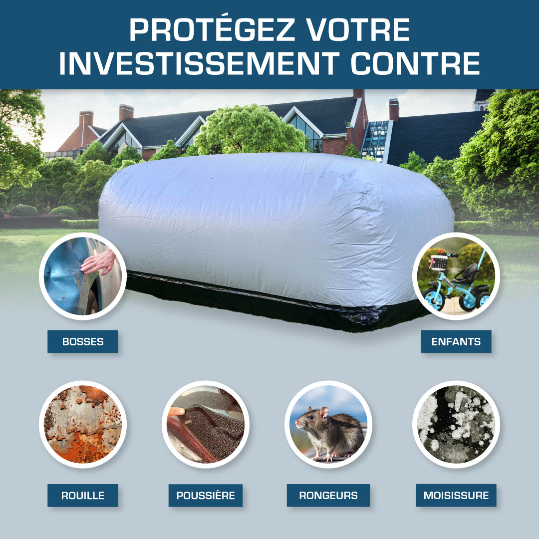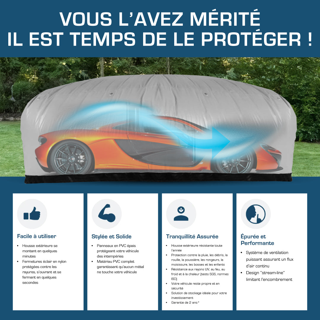 Protégez votre voiture avec style grâce à notresolution de couverture et de rangement extérieure résistante aux intempéries pour voiture. Le Protection extérieure pour voiture™s'installe en quelques minutes et recouvre entièrement votre véhicule, assurant rien ne touche à votre voiture.