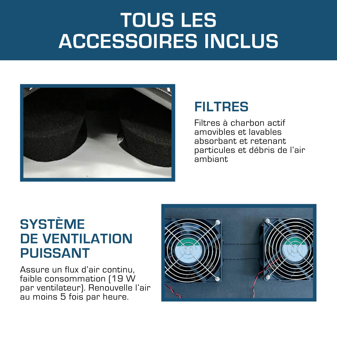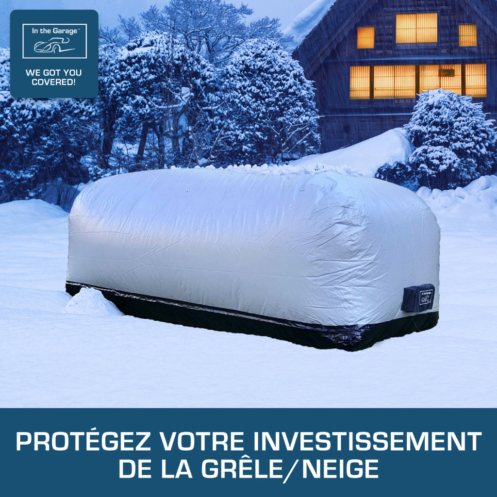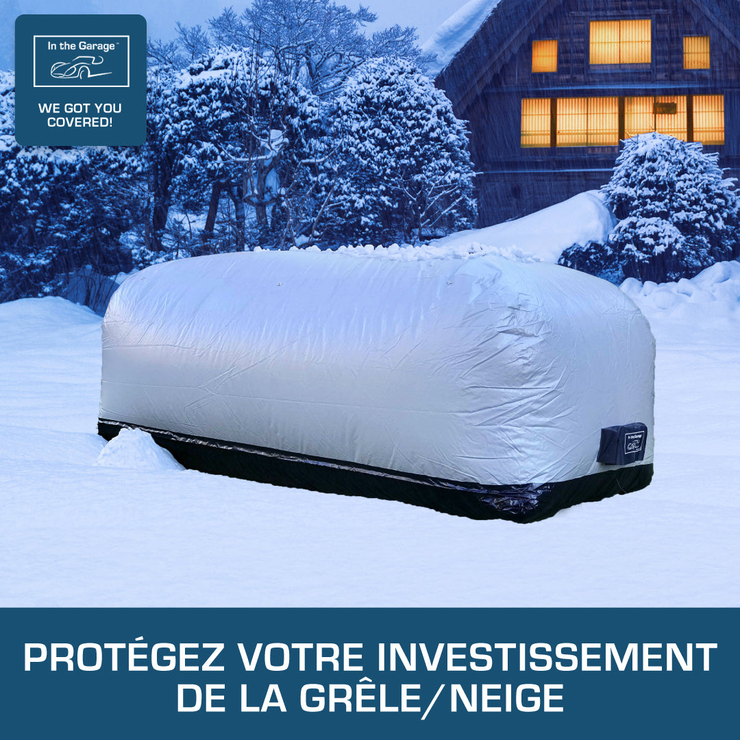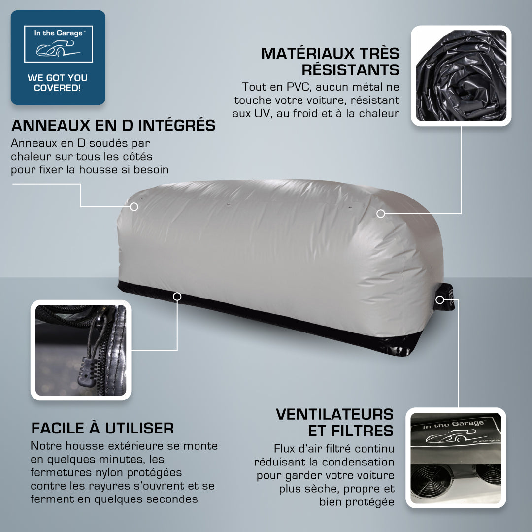 UN système de flux d'air filtré continucontribue à prévenir la condensation, gardant ainsi votre voituresèche, propre et protégée contre la rouille et les dommages causés par l'humidité. Conçu pour une utilisation tout au long de l'année, le Outdoor Car Shield™ est Résistant aux UV, ignifugé et conçu pour supporter la chaleur et le froid..