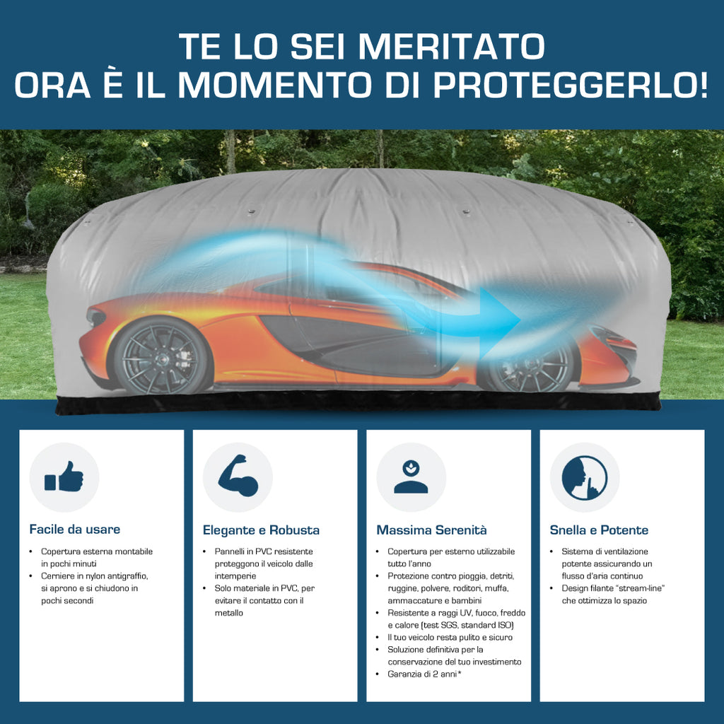 • Pannelli in PVC resistente proteggono il tuo veicolo dalle intemperie