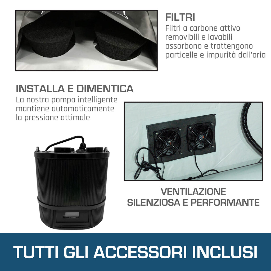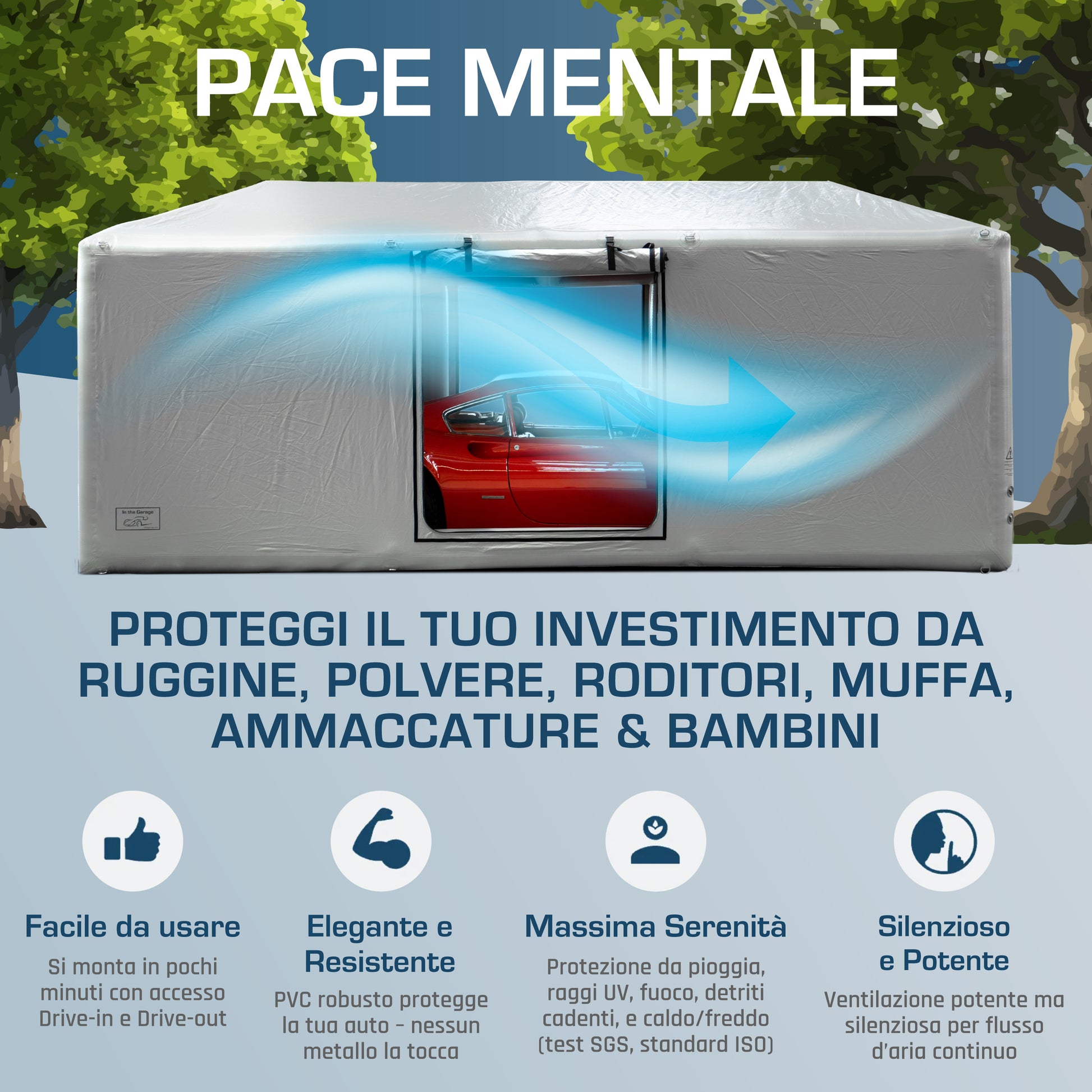 Un sistema continuo di flusso d'aria filtrata aiuta a prevenire la condensa e l'accumulo di umidità, mantenendo la tua auto più asciutta, pulita e sicura tutto l'anno. Goditi l'accesso comodo per entrare e uscire, che rende facile usare il veicolo in qualsiasi momento.